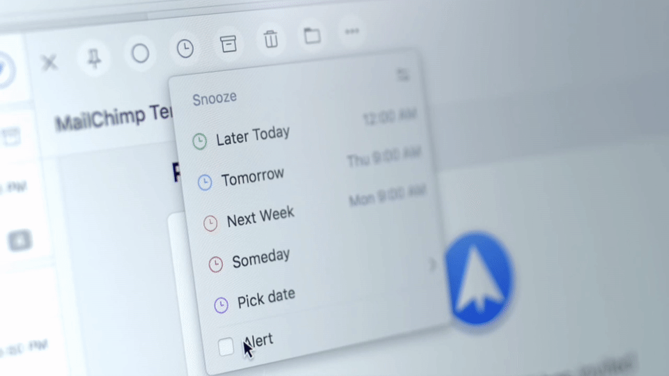 If something you’re asked about in the email requires more than two minutes or some coordination with a third-party, don’t waste your time on it right now. Snooze this email for later today, tomorrow or whatever day suits you best. Snoozed email will appear the top of your inbox at the time you choose.
