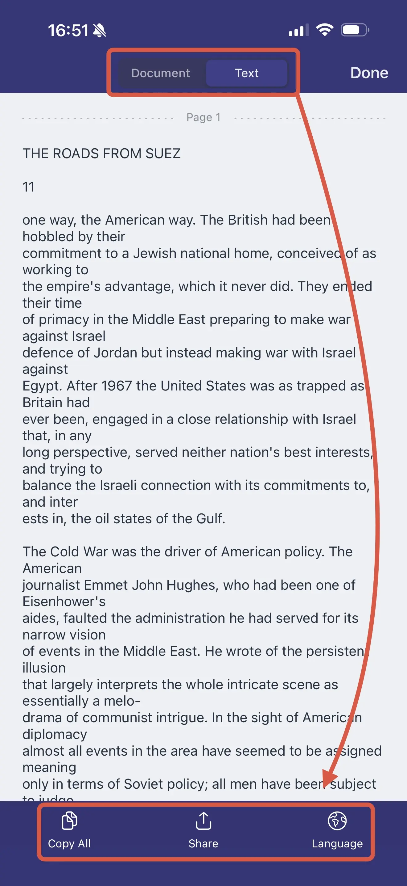 Ein gescanntes Dokument ist erst einmal nur ein Bild. Du kannst den Text sehen, aber nicht danach suchen, eine Textstelle zum Einfügen in eine E-Mail auswählen oder eine Telefonnummer kopieren, ohne sie manuell einzugeben. OCR — optische Zeichenerkennung — bringt diese Änderungen. Die Text-Erkennung von Scanner Pro liest den Text in deinen Scans und ergänzt eine durchsuchbare Ebene, sodass du Inhalte direkt aus jedem Dokument in deiner Bibliothek auswählen, kopieren und teilen kannst.
