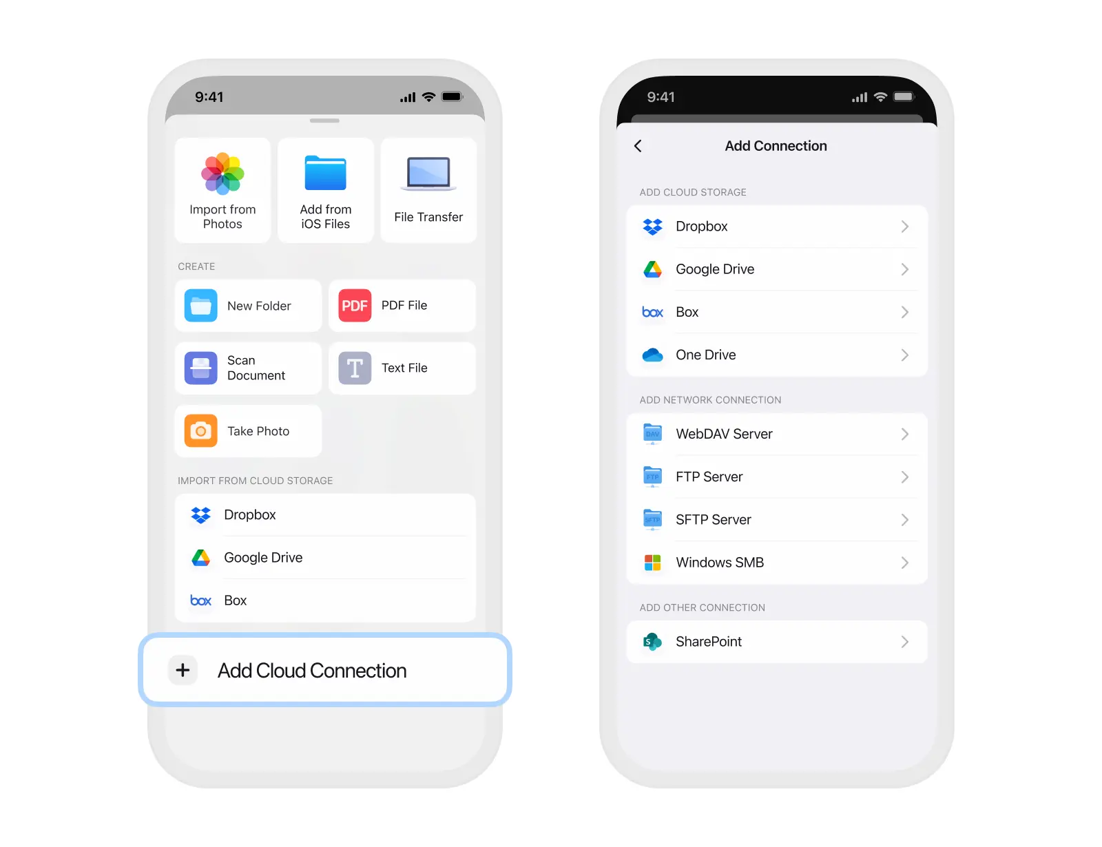 Documents fonctionne parfaitement avec tous les principaux services de stockage cloud, notamment iCloud, Google Drive, Dropbox et OneDrive.