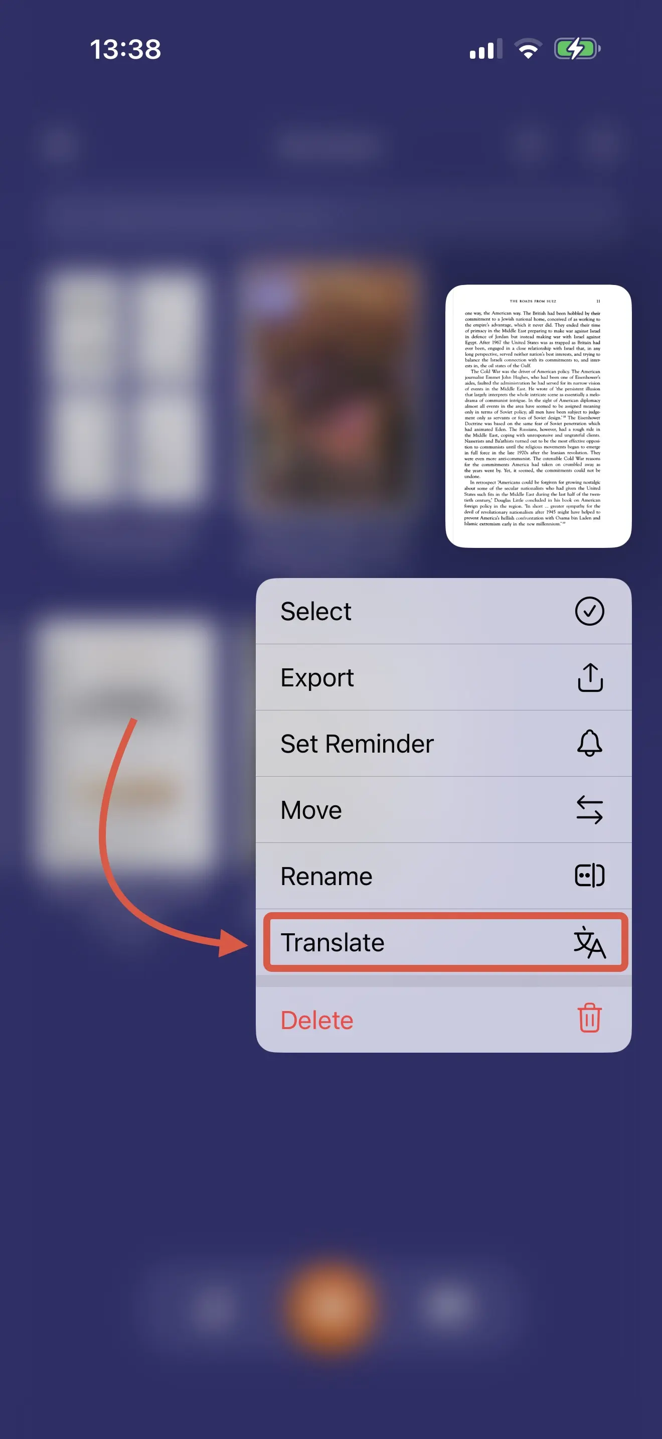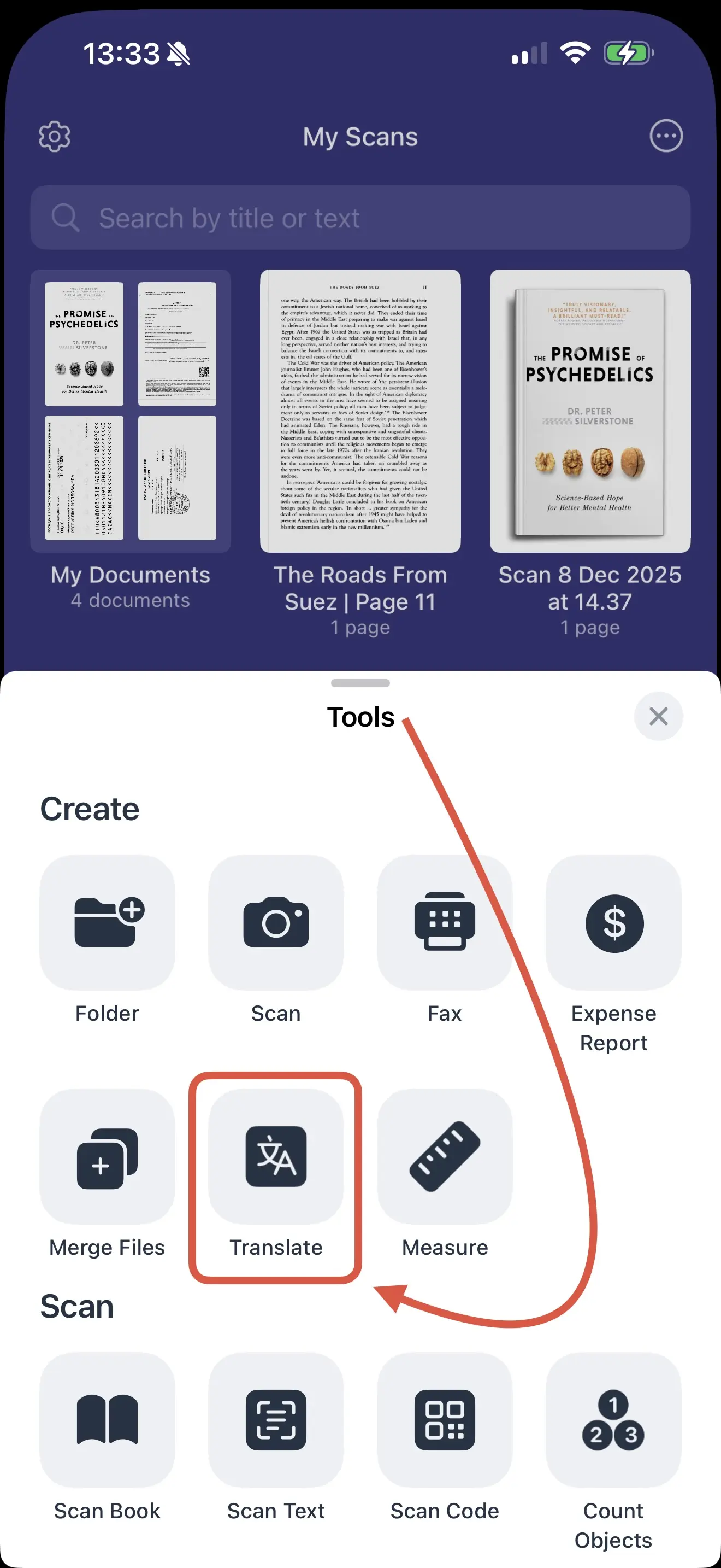 Si vous avez besoin d’une solution pour tout faire au même endroit (créer une numérisation, la traduire, l’envoyer), Scanner Pro est l’outil idéal pour vous. À partir d’iOS 26, Scanner Pro permet de traduire des scans ou des PDF dans l’application vers plus de 20 langues prises en charge par le système.