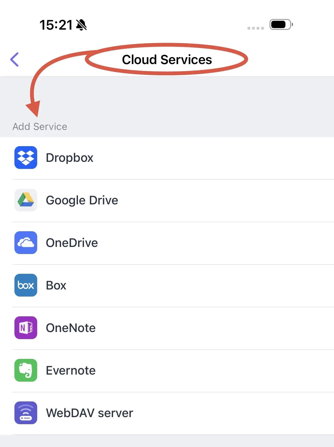 从 Scanner Pro 这类应用把文件传到电脑,最可靠的方法是通过共享的云文件夹。 目前,Scanner Pro 与 Google Drive、Dropbox、Box、OneDrive、OneNote 和 Evernote 无缝协作。 要将这些服务之一连接到应用,请按以下步骤操作: